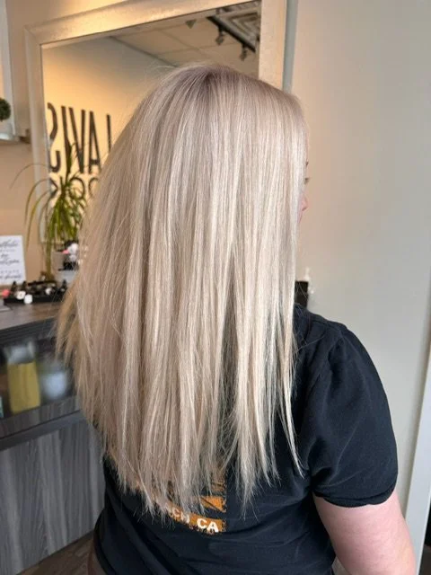 Color refreshed every 6-8 weeks, and reinstalled every 8 weeks, gloss and trim as needed to maintain tone, softness, and length retention
